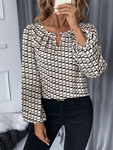 • Kadın uzun kollu damla detaylı yaka desenli süprem bluz