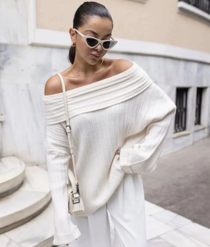 • Kadın uzun kollu katlama detay madonna yaka salaş kazak