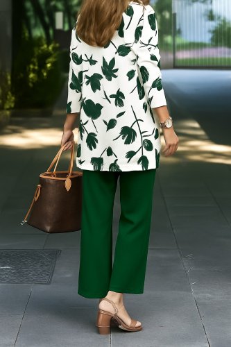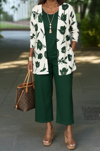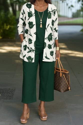 Kadın uzun kollu önü açık modal ceket kolsuz viskon iki iplik bluz ve pantolon üçlü takım