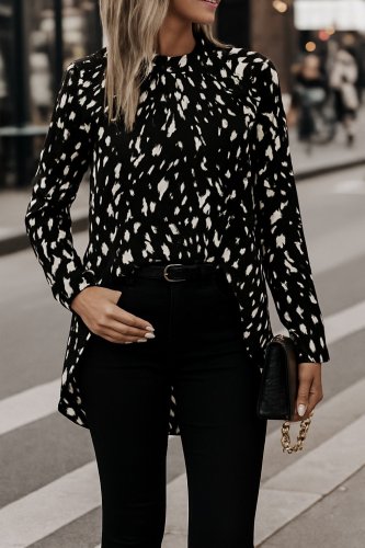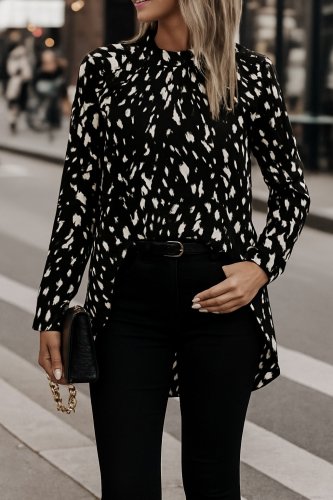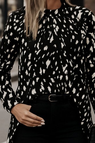 • Kadın uzun kollu yarı balıkçı yaka desenli dokuma bluz